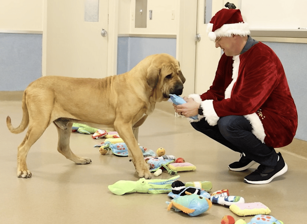 Look, dogs at the shelter may have never even celebrated Christmas and might not understand that these presents are for them. So some might be a little hesitant, some might jump right in, but we’re gonna find out and have some fun. I asked the shelter team what dog should go next. Wait, what dog?