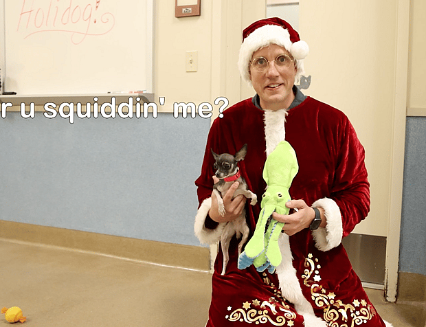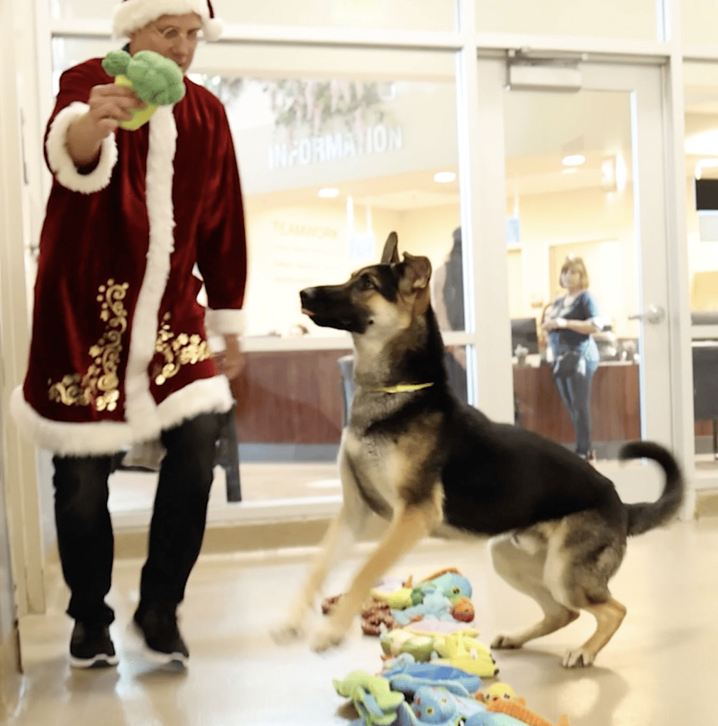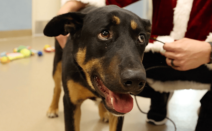 We’re gonna let shelter dogs pick out whatever Christmas present they want. Because shelter dogs are good dogs too, and they deserve a present and some love. Happy Holidog from Santa Paws. Actually, it’s me, Rocky Kanaka.