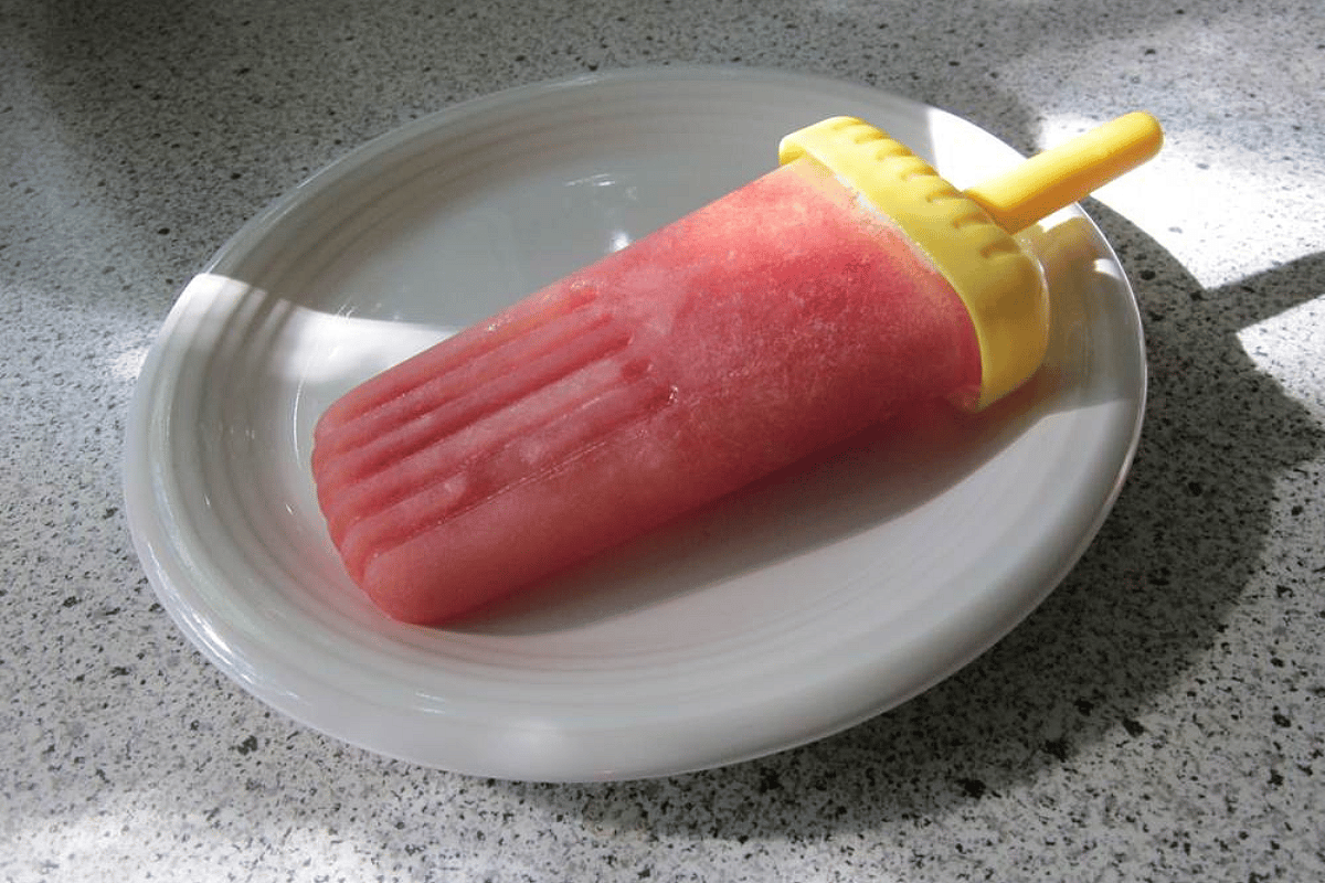 - Pour the plain watermelon purée into a silicon mold or ice cube tray, freeze until solid, then serve.