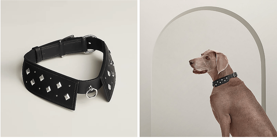 One of the most unique luxury leather collars for dogs I could find, the Black Tie Collar from Hermés is designed to look like the collar of a dress shirt. Made from bridle leather and studded with silver-plated stainless steel, the Black Tie Collar is available in medium and large sizes for $1,975 and costs slightly less for small and extra-small dogs at $1,575.