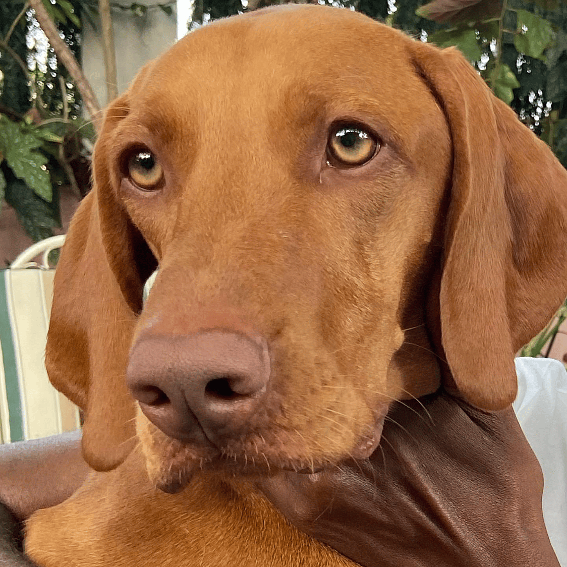 It’s quite common for Vizslas to have green, hazel, or amber eyes since this breed lacks black pigment universally. Vizslas are curious, aloof, and loyal dogs who sometimes act more like cats than canines, but can also have big bursts of energy.