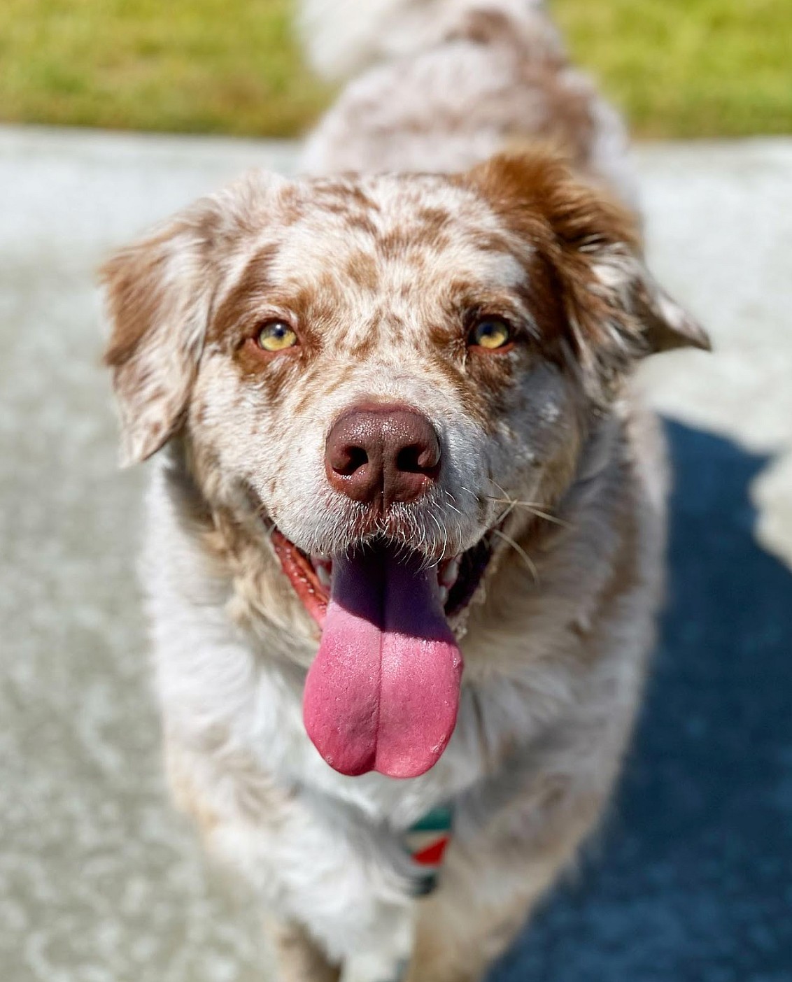 Australian Shepherds are well known for their famously striking eyes and unique coat patterns. Merle Australian Shepherds are more likely than bi and tri-colored Aussies to have green, blue, or light-colored eyes since they carry a pigment diluting gene that affects skin, coat, and eye color.