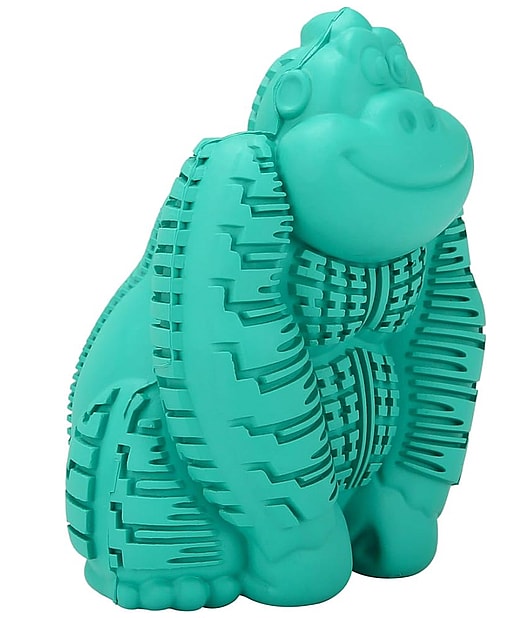 It also has a small hole at the bottom that you can fill with treats. It will then slowly dispense the goodies as your dog gnaws away. Perhaps the most outstanding feature of this gorilla toy is its dental hygiene prowess. Arm & Hammer ensures that their heavy-duty rubber dog toys meet a high standard of cleanliness by: