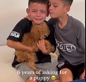 You can also see Logan’s brother tearing up, which just goes to show that he truly understood how much this surprise meant to his little brother. When Logan finally gathers the strength to carry the puppy into his arms, his sobbing only gets louder. And as he holds it close to his chest, one thing’s clear: his world finally felt complete.