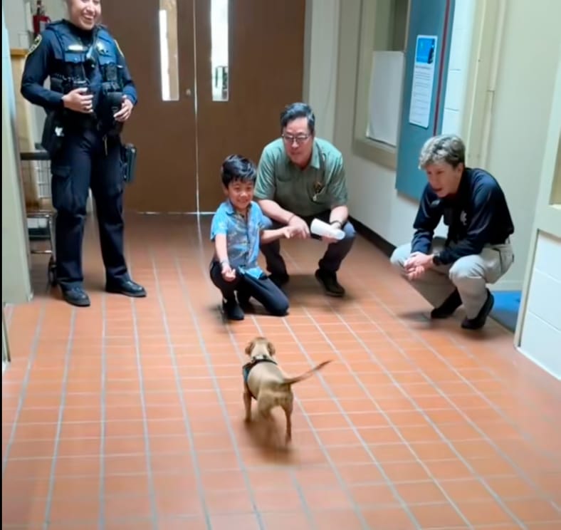 The video shows the moment Peach recognized her family from across the shelter’s hallway and ran toward them at top speed with uncontainable joy. Staff members watched in tears as Peach leaped into her family’s arms, her little tail wagging so vigorously into a blur. She couldn’t stop jumping and wiggling her tiny body in excitement, and it’s honestly the most soul-stirring clip to witness.