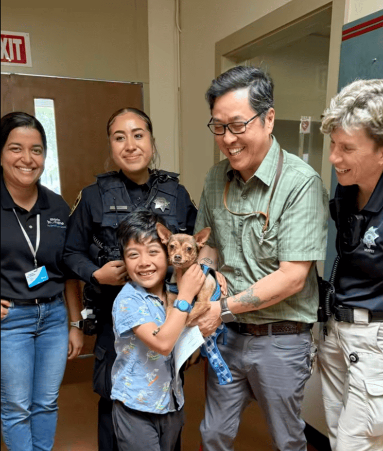 Things took a miraculous turn a few days ago when a San Rafael Police Officer spotted Peach in a distressed state and confronted the individuals caring for her. Fearing for Peach’s safety, the officer brought her to Marine Humane Animal Services, where staff immediately scanned her for a microchip. To their surprise, Peach’s microchip came up with updated information about her family. The shelter then contacted the Chows to inform them of the good news so they could come and get their beloved dog.