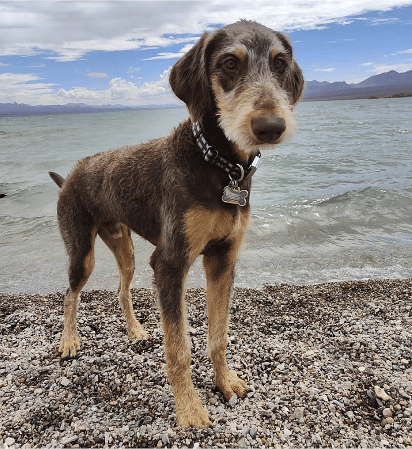 The Irish Wolfadoodle blends the towering grace of the Irish Wolfhound with the intelligent, hypoallergenic coat of the Standard Poodle. This hybrid stands out with its impressive height, typically ranging from 24 to 32 inches at the shoulder, and can weigh between 90 to 140 pounds. With the Wolfhound’s calm demeanor and the Poodle’s keen intelligence, the Irish Wolfadoodle is both a noble companion and a quick learner. Perfect for those who appreciate a dog that combines striking size with a gentle personality and sharp mind, the Irish Wolfadoodle makes an excellent addition to active families looking for a unique and engaging pet. Learn more about the Irish Wolfadoodle.