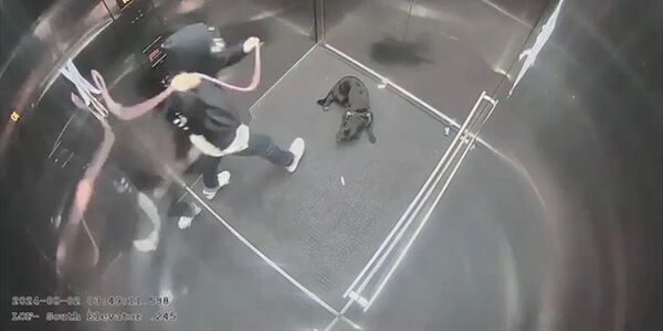 The distressing video, which surfaced earlier this month, shows the man wielding a heavy rope and swinging it down onto a black dog, who can be seen cowering in terror. Trapped in the confined elevator space, the animal had no means of escape. The video then shows the man hanging the dog from a fire extinguisher mount, proceeding to kick it multiple times in a sustained attack.