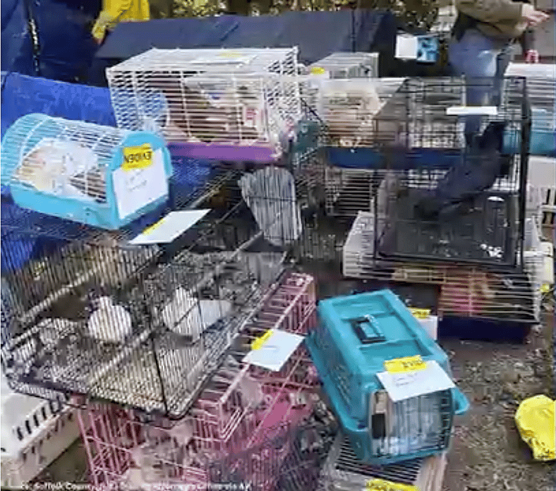 What authorities found inside a quiet suburban home in Northport, New York, was almost too horrific to believe. More than 200 animals — including cats, dogs, parrots, hedgehogs, chinchillas, and even flying squirrels — were discovered living in filth and confinement. Cages were stacked on top of one another, overflowing with feces and waste. Many of the animals had no clean water, no food, and no hope.