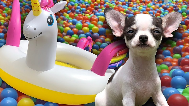 Sammie’s First Bath! 8 Week Chihuahua Rescue Puppy | Unicorn Ball Pit