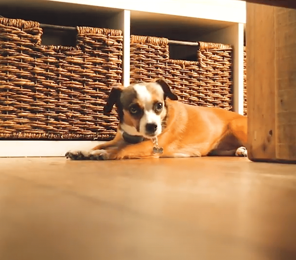 She was just hiding under a corner of the table and it was on a hardwood floor and it wasn’t comfortable. And so I had an idea, her little hiding spot under the kitchen table, we were gonna transform it.
