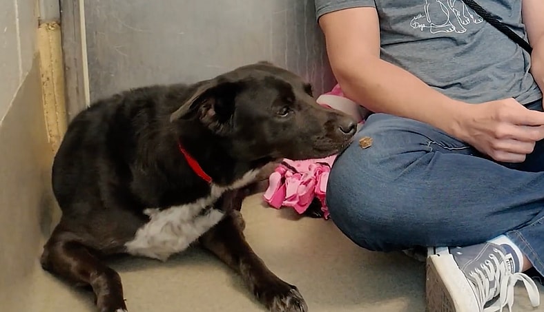 And Mia is a black dog in a shelter, which already stacks the odds against her. Add fear, shutdown behavior, and a return after seven years, and suddenly this sweet girl is almost invisible to the average adopter. That’s the brutal math of shelter life.