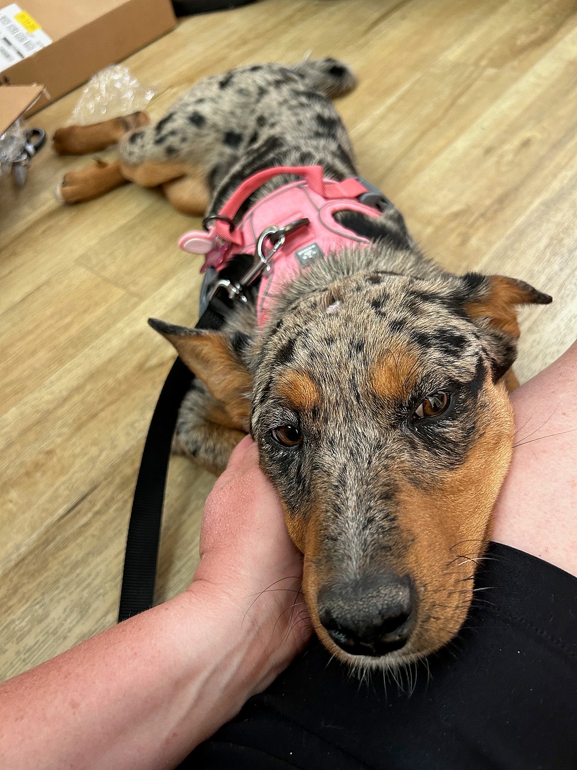 Shiloh, now renamed Navi after the fairy that guides Link from the popular video game franchise “The Legend of Zelda,” has been doing wonderful at home with her new family. Since she’s still young (under a year old) and due to her breed, she is very energetic, and it matches with the children in the home perfectly. Sheridan, her two children Phoenix (5 years old), Odin (7 years old), her husband Yancy, and their older dog Star live in the home, and daily they are teaching her how to play nice, where to potty, and more. They work with an online trainer and recently, Navi was fixed. The boys love playing tug-o-war with Navi! She still has a long way to go in her training, but overall, the home is in an energetic harmony that the boys and Navi will grow up in together.