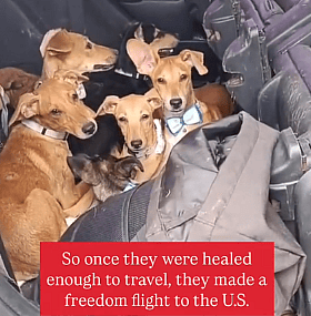 “In a place where homeless pets are regularly poisoned and abused, even within the walls of a shelter, which are often broken into, there is no safe place for them,” the Humane Society wrote. “So when we were asked to take in these six puppies and help them begin new lives in the U.S., we didn’t hesitate to accept them.”