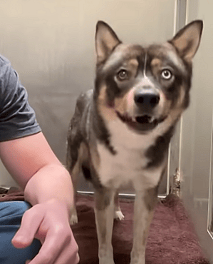Nigel was probably a Shepsky (shepherd / husky mix), with a beautiful coat and striking heterochromic eyes, one eye blue and the other brown. He was timid but warmed up quickly, a trait that became more evident as we spent time together. He was alert to other dogs but didn’t bark, a good sign for his potential adoption.