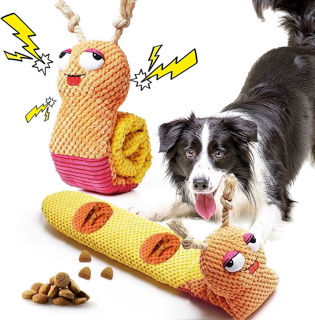 3. Squeaky Snuffle Treat-Hiding Dispenser Snail Toy