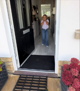 The video, posted by the girl’s parents on their TikTok account @oakleythecockerspaniel11, begins with the unsuspecting girl opening the door for her parents, unaware that they had brought home a gift that would change her life forever.