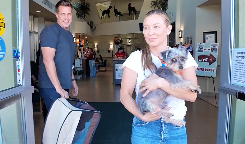 I called Kelly to meet me at the shelter. We both moved slow — no rush, no pressure. He wasn’t ready for leashes or treats, so Kelly gently scooped him into her arms. That moment sealed it: Bodie was coming home to the farm.