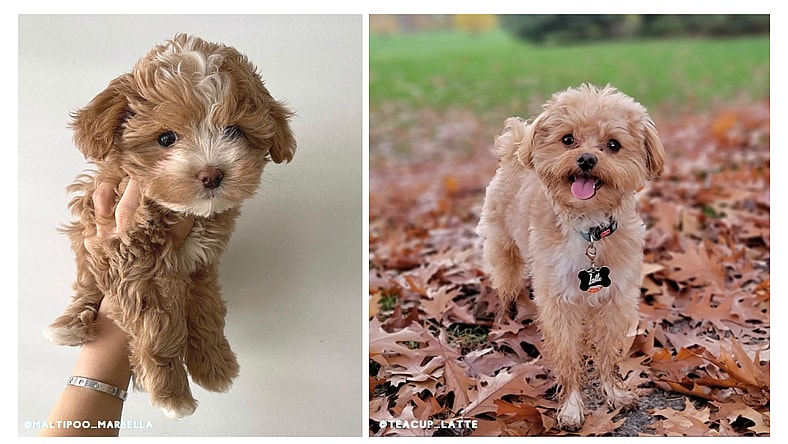 Latte (right) is a tiny three-year-old teacup Maltipoo who was born in Seoul, South Korea, but now lives in Toronto! A pup with tons of friends, you can see just how tiny Latte is next to another small breed: the Bichon Frise.