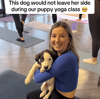 And the other best thing about puppy yoga is that you don’t need to have your own dog to be part of it. Oftentimes, you’ll find adoptable puppies at the event who’ll steal your heart in an instant. That’s exactly what one lady experienced at a recent puppy yoga class. But in her case, the class ended with her falling head over heels for one particular pup, so much so that she adopted him shortly after.